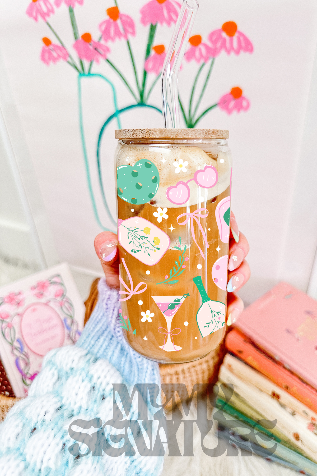 Inclut un couvercle en bambou & une paille en verre régulière.