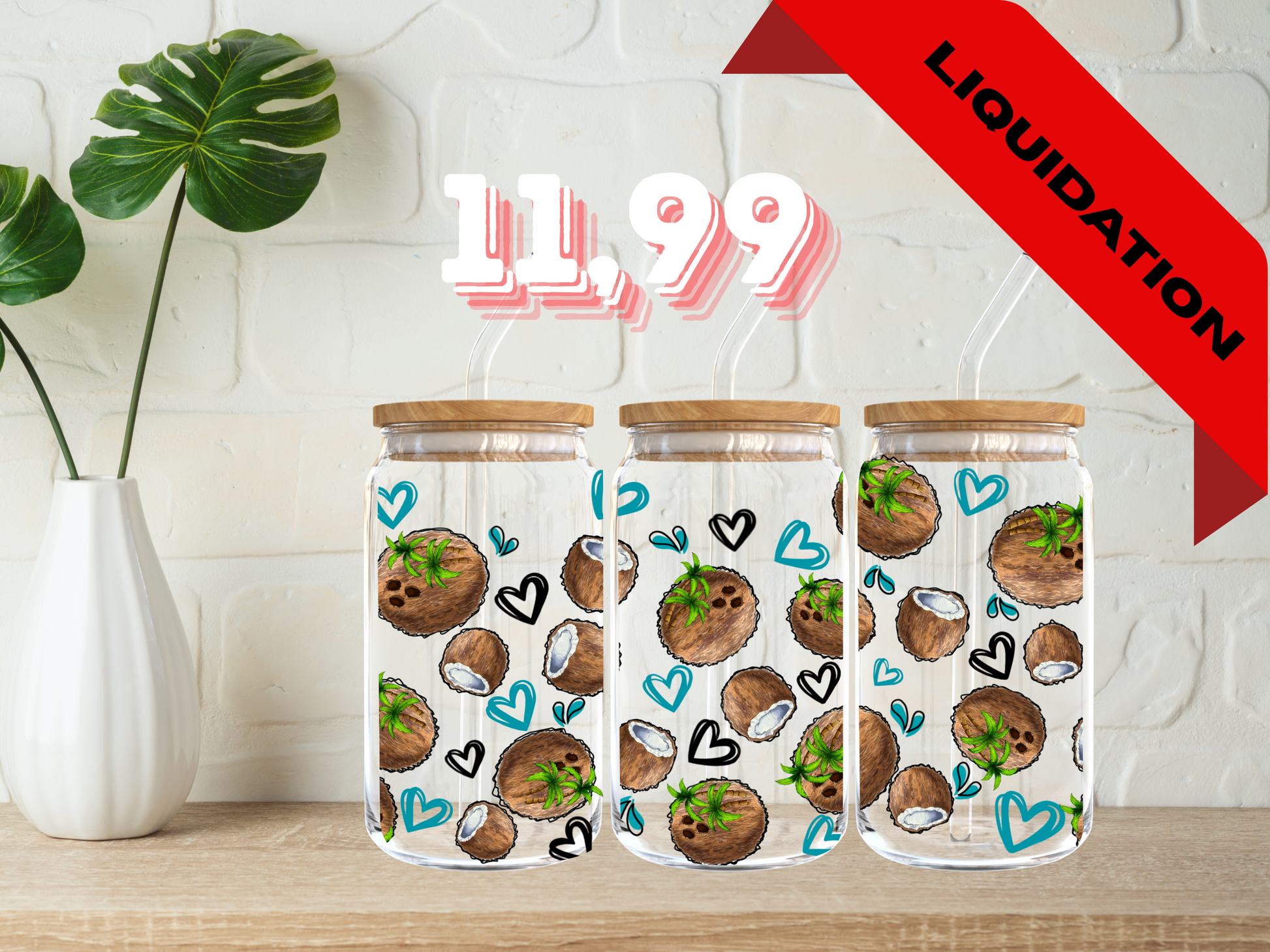 Inclut un couvercle en bambou & une paille en verre régulière.